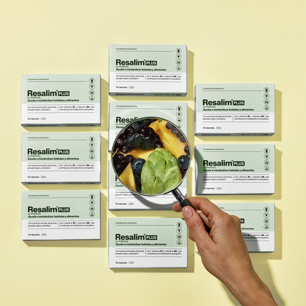 La fórmula de Resalim™ Plus se encuentra cuidadosamente estudiada y desarrollada, con una selectiva búsqueda de ingredientes, incluyéndose extractos de piña, alcachofa, grosella negra y arándano. Dos cápsulas aportan el 100% de la Cantidad Diaria Recomendada de las vitaminas B1 y B6, vitaminas que contribuyen a disminuir el cansancio y la fatiga, así como a un buen metabolismo energético, de las proteínas y del glucógeno.
