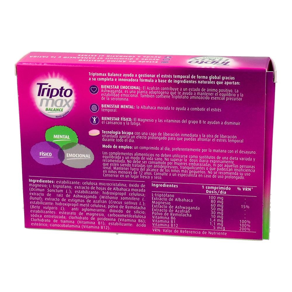 Triptomax Balance es un suplemento dietético en forma de comprimidos que ayuda a mejorar el equilibrio emocional y el estado de ánimo.
